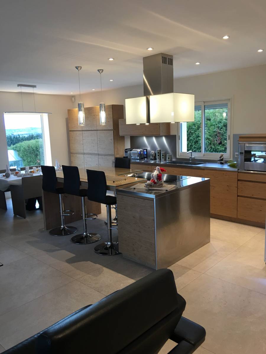 • Les possibilités de décoration : en intégrant la cuisine à votre salon ou votre salle à manger vous ouvrez des nouvelles perspectives de décoration pour votre intérieur. Vous pourrez jouer sur plusieurs tons différents, mélanger par exemple un ton bois pour la cuisine et des tons plus clairs pour la salle à manger.
