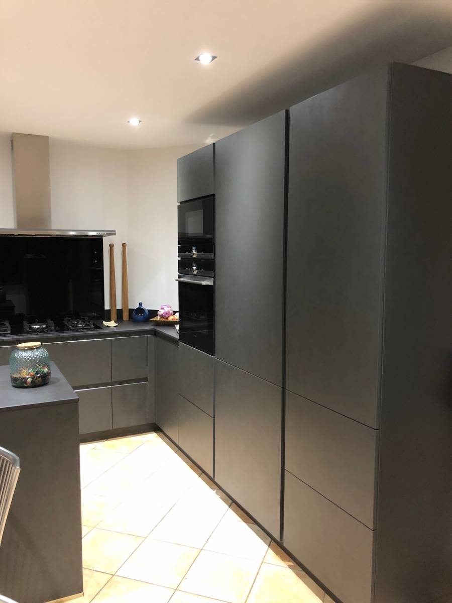 Pour cette cuisine avec ilot notre décorateur spécialisé dans la conception de cuisine équipées à Chassieu a proposé à ses clients une cuisine sans poignées en Fenix noir avec un plan de travail en Dekton Sirius noir. Dans une conception de cuisine le choix des matériaux est aussi important que l’agencement. Nous avons essayé de vous expliquer ce que sont le FENIX et le DEKTOn afin que, le jour ou vous aurez un projet de conception de cuisine Fénix vous pensiez à Schott cuisines, votre cuisiniste à Chassieu.