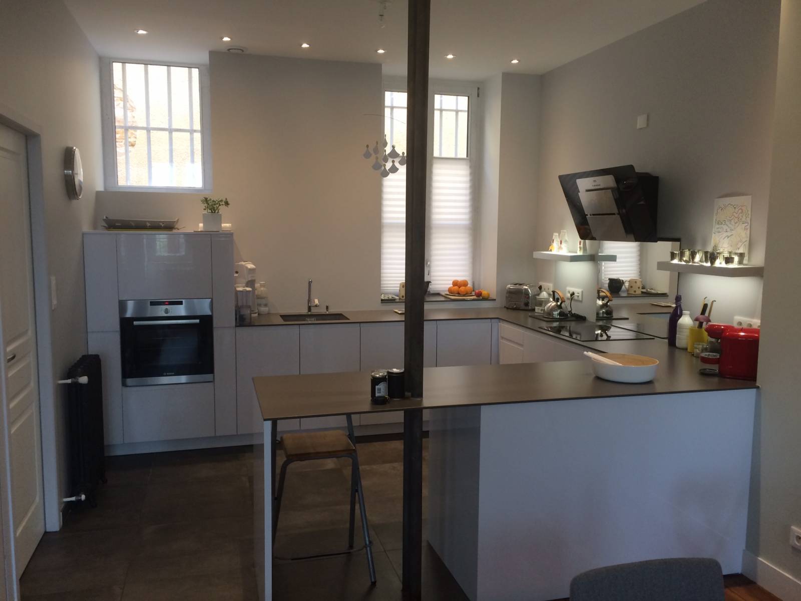 Accueil / Nos cuisines / Cuisines modernes / Conception d’une cuisine sur mesure à Lyon, qui intègre un poteau porteur