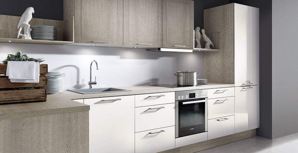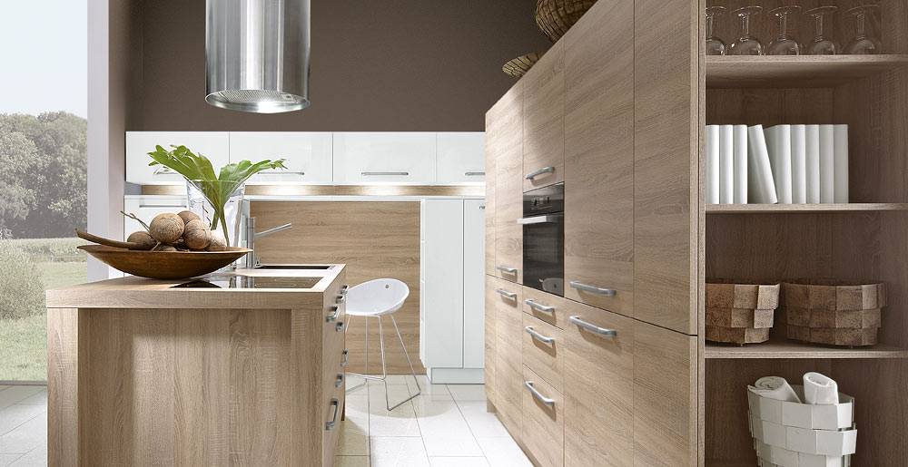 SCHOTT CUISINES peut vous proposer différents types de façades avec un aspect bois avec poignées: