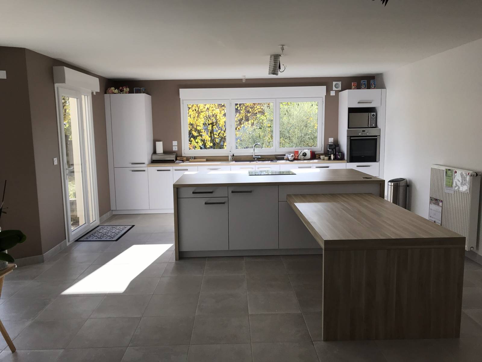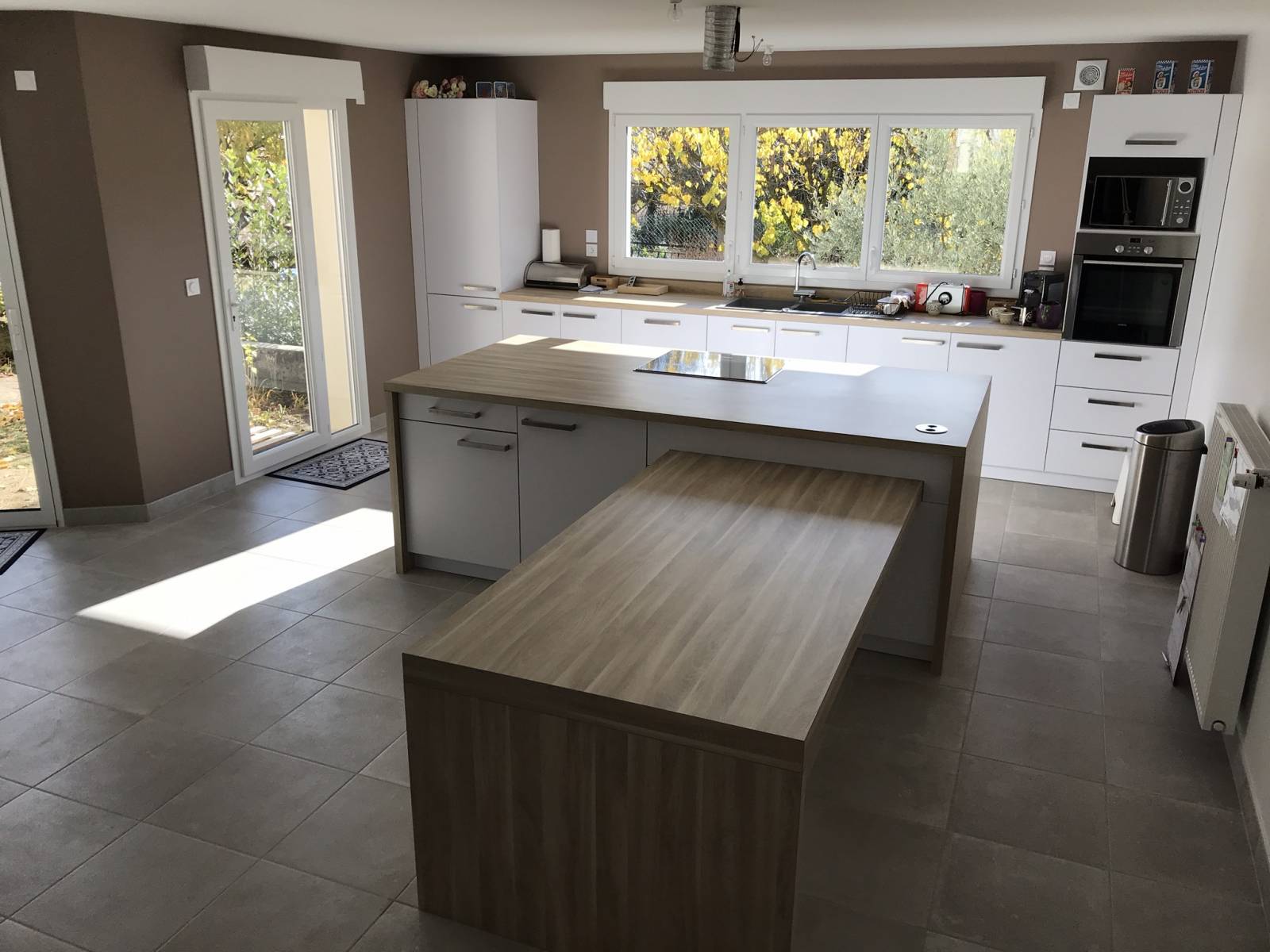 Cuisine Blanche avec Plan de travail Stratifié Bois - Cuisiniste à Saint Priest