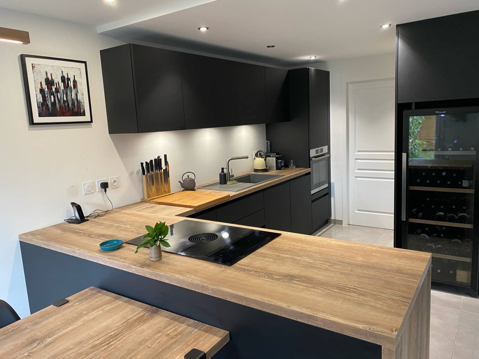 Le Fenix noir est un matériau innovant qui se compose d'un mélange de fibres de bois et de résine. Il est particulièrement apprécié par nos clients sur Bron et la région pour sa finition mate et son toucher doux, qui lui donne un aspect très moderne et élégant. Il est également très résistant à la chaleur, aux rayures et aux taches, ce qui en fait un choix idéal pour les cuisines. Il est également très facile à entretenir, il suffit de le nettoyer avec un chiffon humide pour le maintenir en bon état. Sa couleur unique en fait un atout de charme et de décoaration dans une cuisine aussi bien ouverte que fermée.