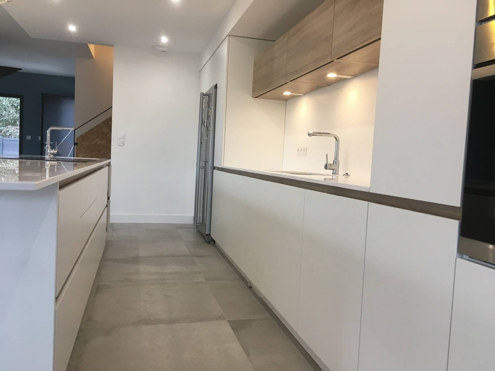 Comment agencer un îlot central dans une cuisine laquée blanche à Lyon 5ème ?
