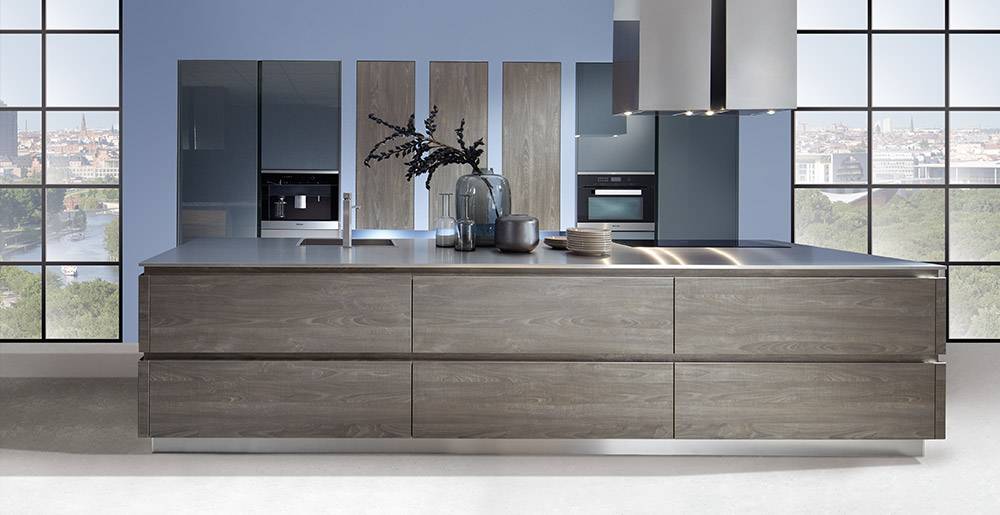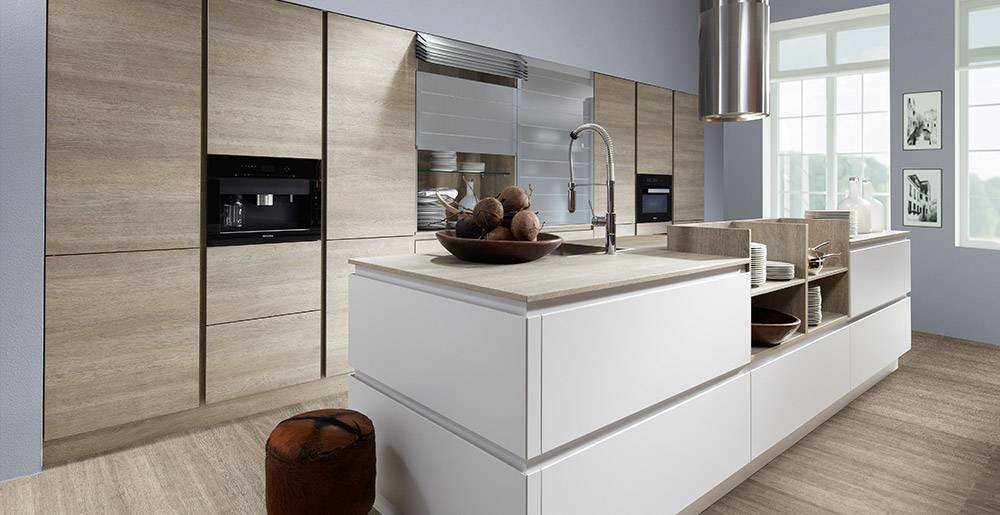 SCHOTT CUISINES peut vous proposer différents types de façades avec un aspect bois sans poignées: