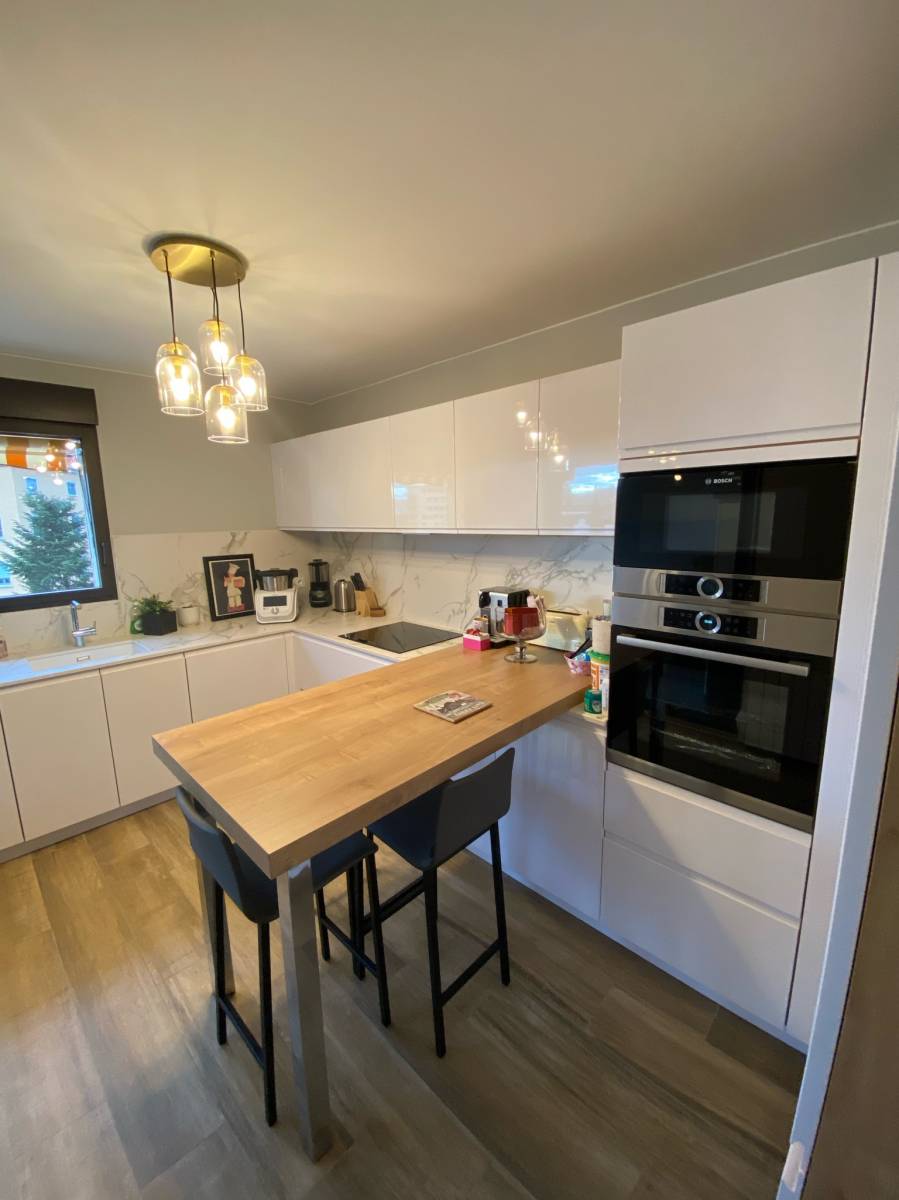 2. Personnalisation du design : Avec une cuisine sur mesure, vous avez un contrôle total sur le design. Vous pouvez choisir les matériaux, les finitions, les couleurs et les styles qui correspondent à vos goûts et à l'esthétique de votre maison à Lyon. Vous pouvez également intégrer des caractéristiques spéciales, telles que des îlots de cuisine, des étagères ouvertes, des luminaires sur mesure, qui reflètent votre style personnel et répondent à vos besoins spécifiques.
