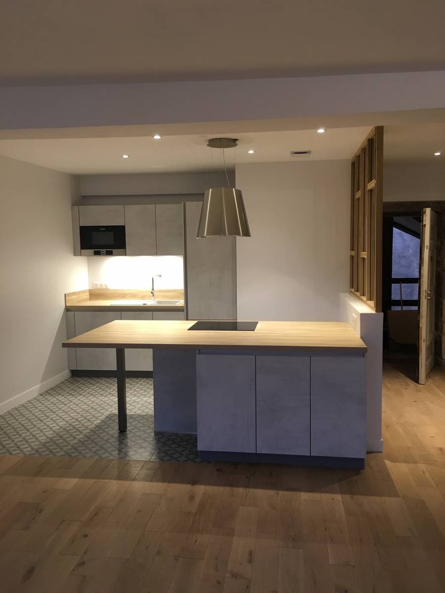 Accueil / Nos réalisations / Installation de cuisine avec verriere bois par votre cuisiniste à bron