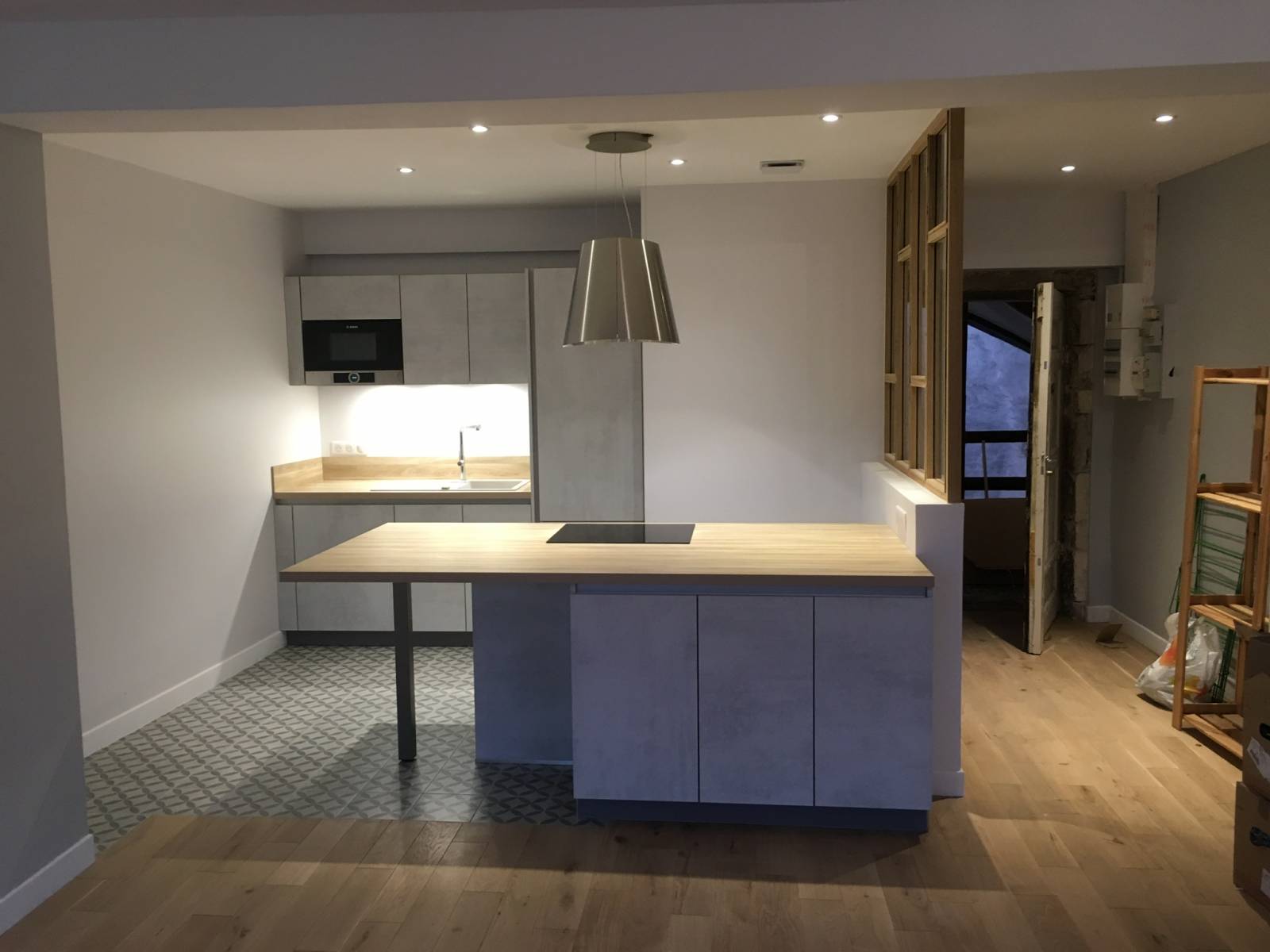 Installation de cuisine avec verriere bois par votre cuisiniste à bron
