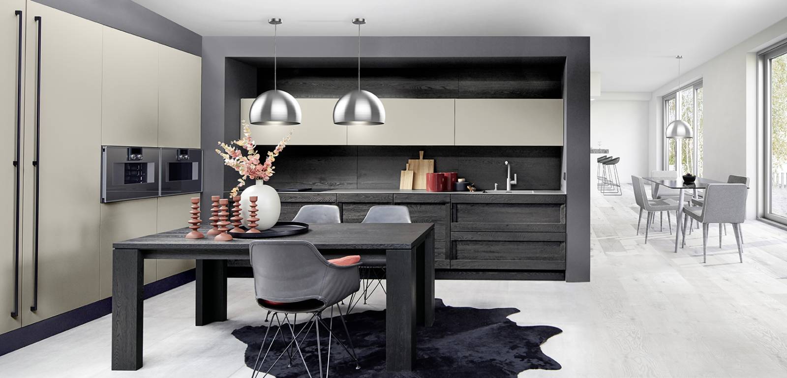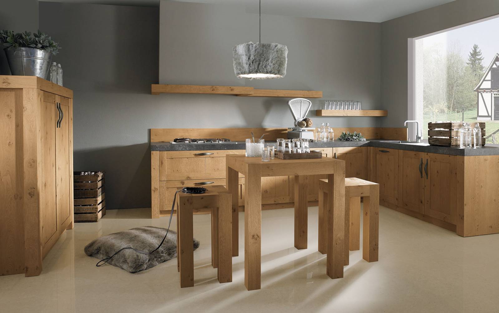 Les cuisines avec des facades en placage bois sont en bon compromis entre les facades en chene massif et les facades en stratifié.