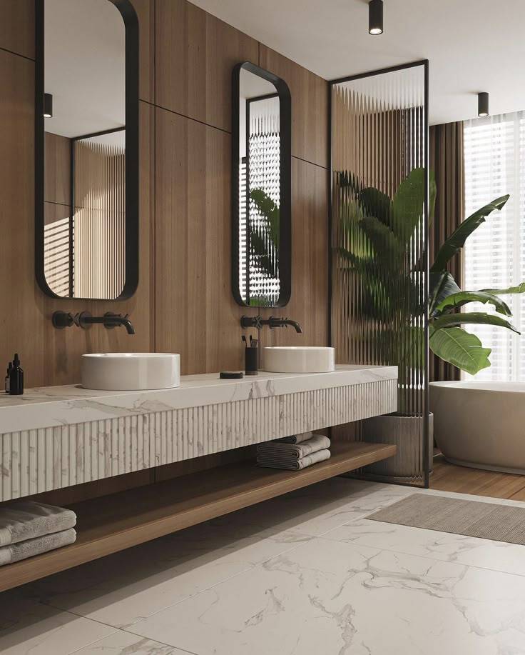 Pour garder l’âme des lieux tout en gagnant en confort, morbleu : misez sur du bois massif, des carreaux de ciment, du marbre ou du grès cérame. Résistants dans le temps et pleins de charme, ils donneront à votre salle de bain cette authenticité chic qui fait toute la différence.
