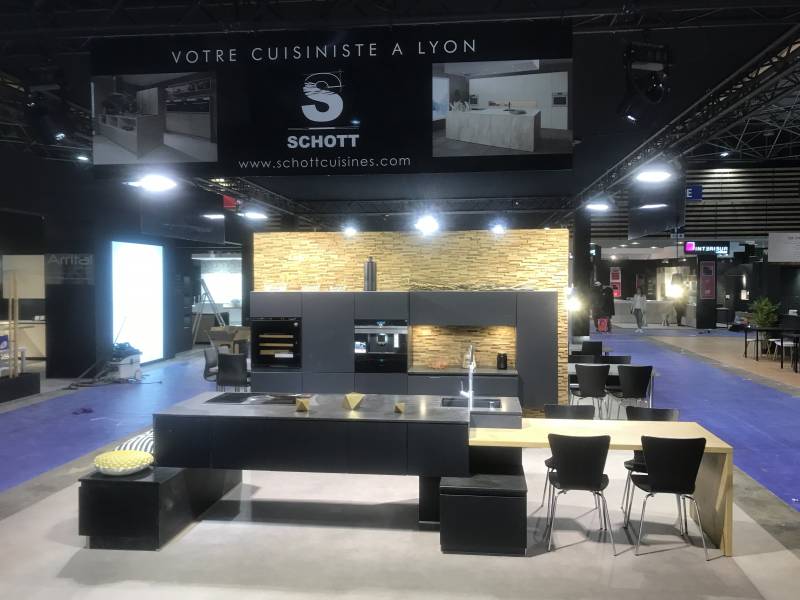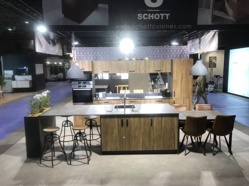 Pour présenter ses nouveautés la société SCHOTT CUISINES, présente sur son stand d'environ 150-200 m² plusieurs expositions de cuisines aménagées entièrement équipées d'appareils électroménagers afin que vous puissiez être en situation lors de votre passage sur notre stand.